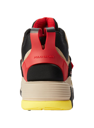 - "Polo Sport" printed at the outer side. "RL" embroidered at the tongue and printed at midsole. "Polo Sport Ralph Lauren" logo patch at the strap. "Polo Sport" at the pull tab.