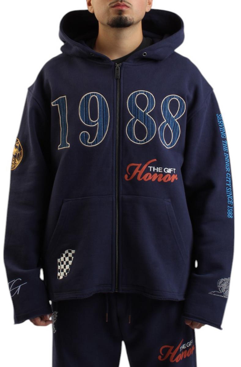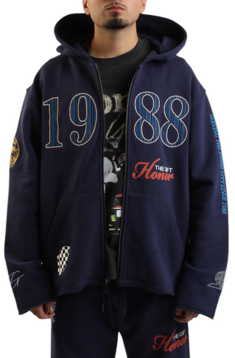 Elevate your urban style with the 1988 Full Zip Hoodie from Honor The Gift. This heavyweight terry hoodie features a bold 1988 screen print on the front, perfect for making a statement while keeping comfortable.