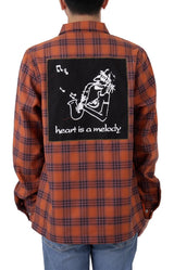 - 80% Polyester / 20% Viscose plaid over shirt- Screen printed canvas patches on front & back