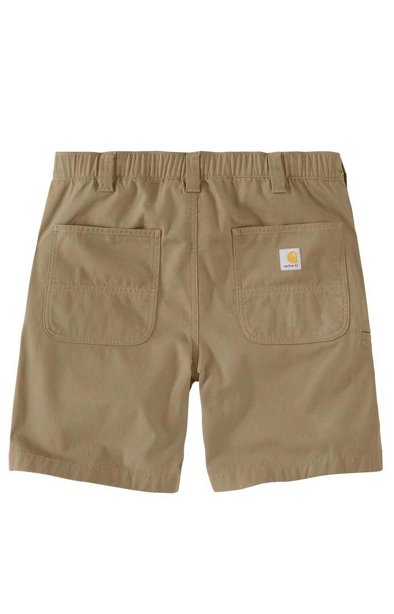 Stay comfortable and stylish with the Rugged Flex Relaxed Fit 8in Canvas Work Short by Carhartt. This 10.5-ounce, 50% cotton/50% polyester blend short features an elastic waistband with hidden drawcord, two side entry pockets, and a secure zippered back pocket. With a 9-inch inseam, you'll be able to move freely and comfortably. Imported.