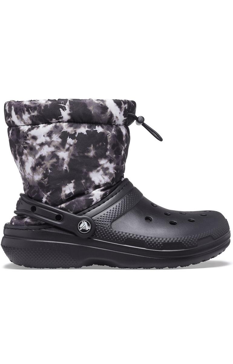 The Classic that started a comfort revolution around the world is a do-it-all style that youâre sure to fall deeper in love with day after day. Boot up in a new graphic lined version featuring a lined tie-dye nylon funnel neck so you get the best of both worlds â Classic with a boot look. Lifelong wardrobe staples beloved by millions of all ages, Crocs Classic Clogs offer lightweight comfort, a color for every personality, and an ongoing invitation to be comfortable in your own shoes.