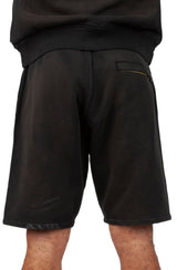 - Washed sweatshorts with custom tipped drawcords & rear zipper pocket