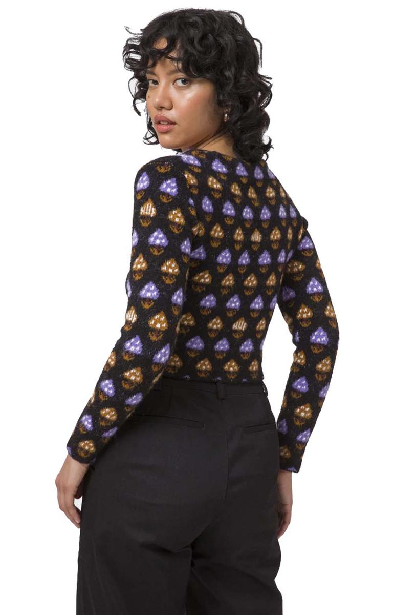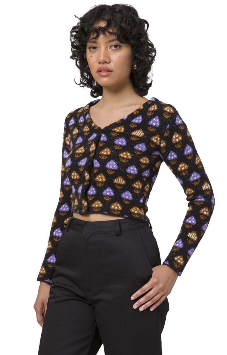 HUF Women's Jacquard Shroom Art Cropped Cardigan - Black
