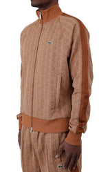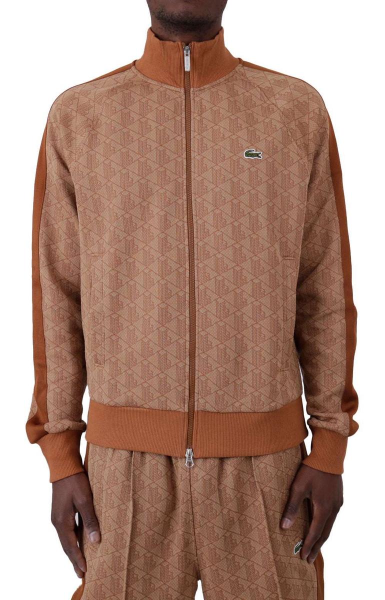 Lacoste Monogram Zip-Up Sweatshirt - Beige/Brown