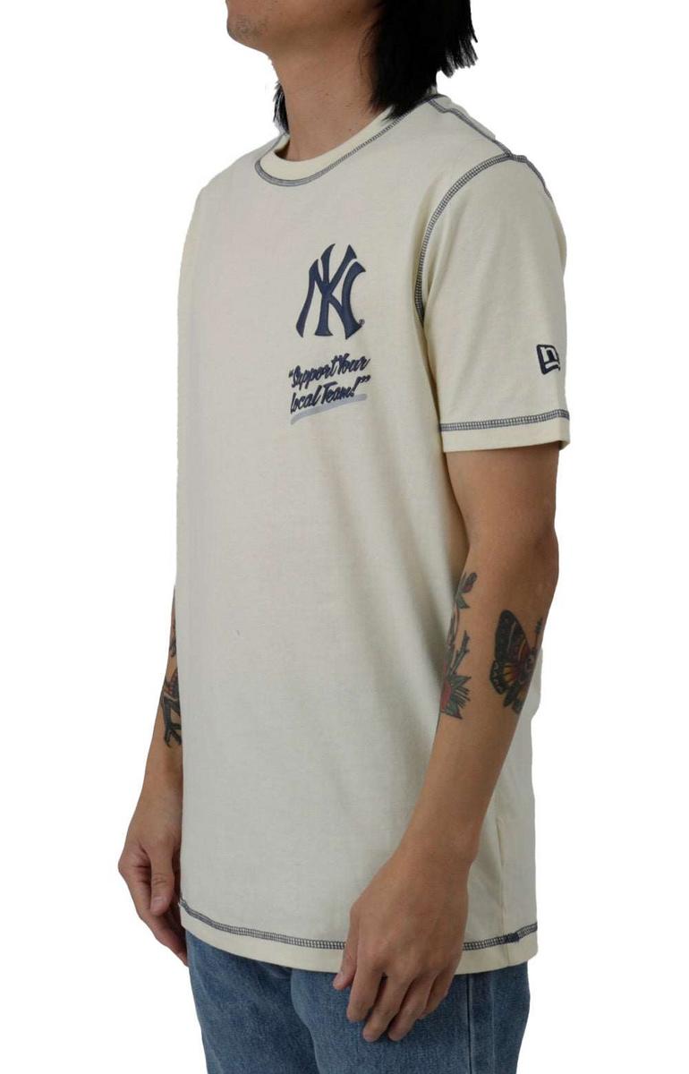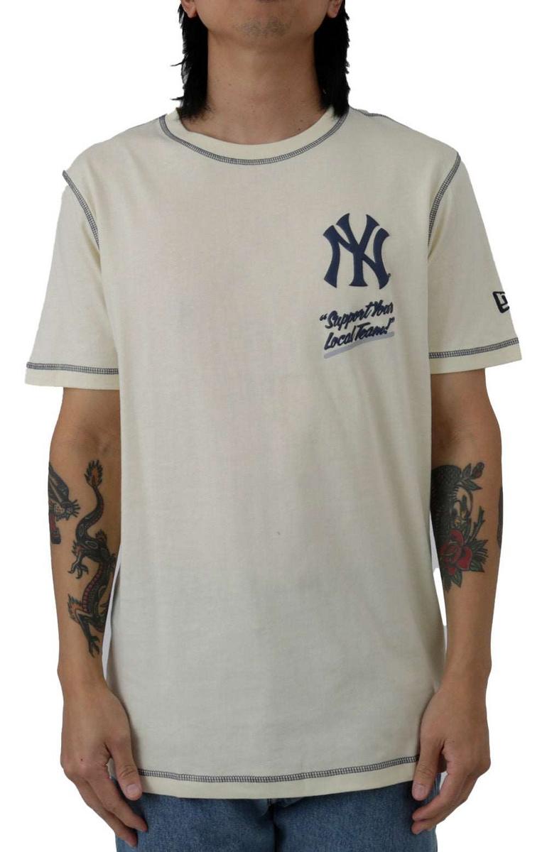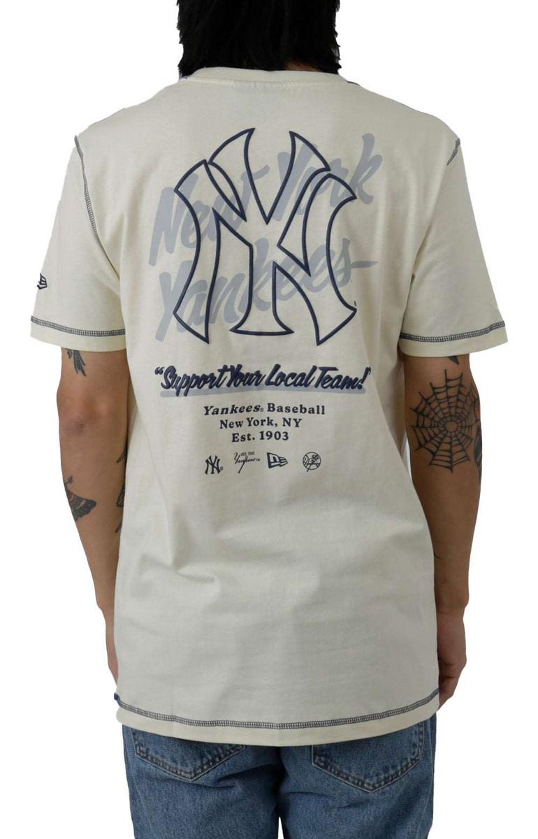 The NY Yankees Teamsplit T-Shirt is made from 100% cotton for a comfortable fit. It features a ribbed crew neck and short sleeves for a classic look. The shirt is machine washable for easy care.