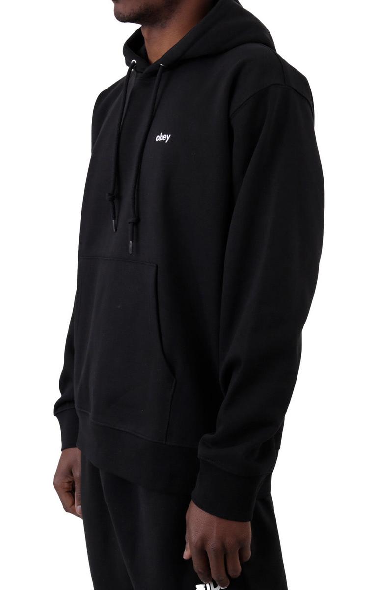 Obey Logo Embroidered Fleece Pullover Hoodie - Black