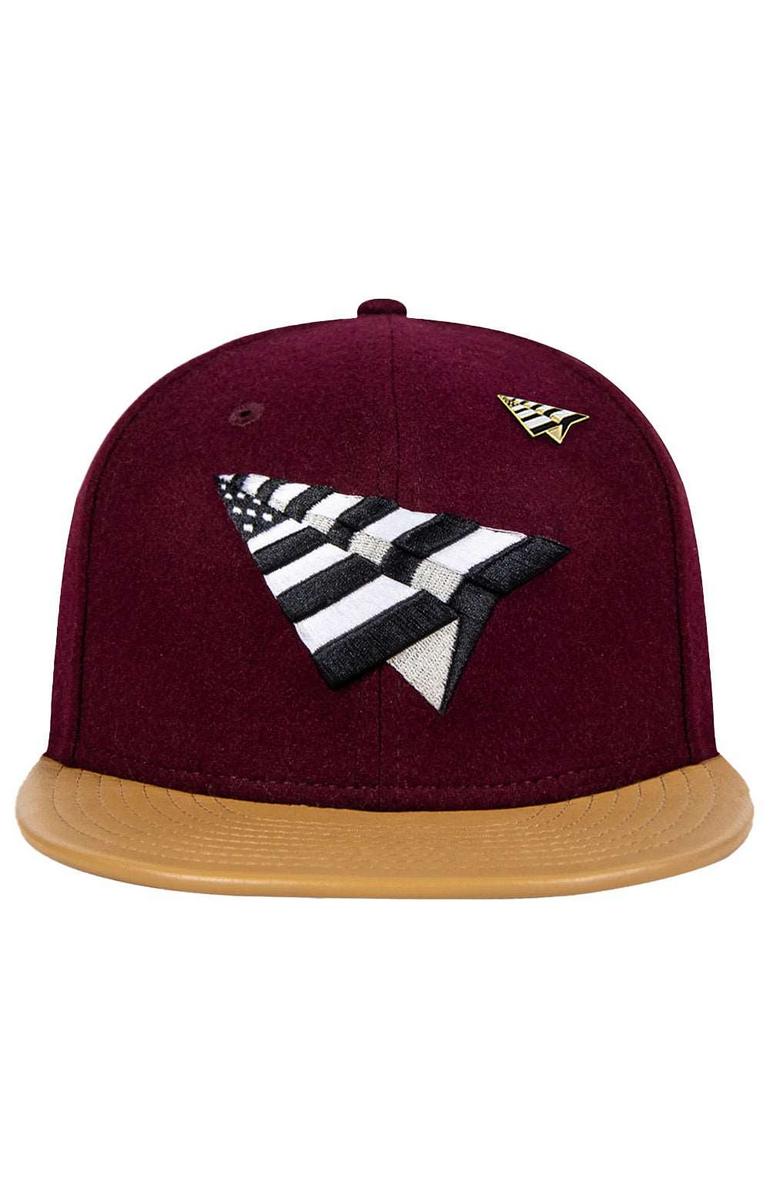 Burgundy Melton Wool Hat with Leather Strap-Back by Paper Planes