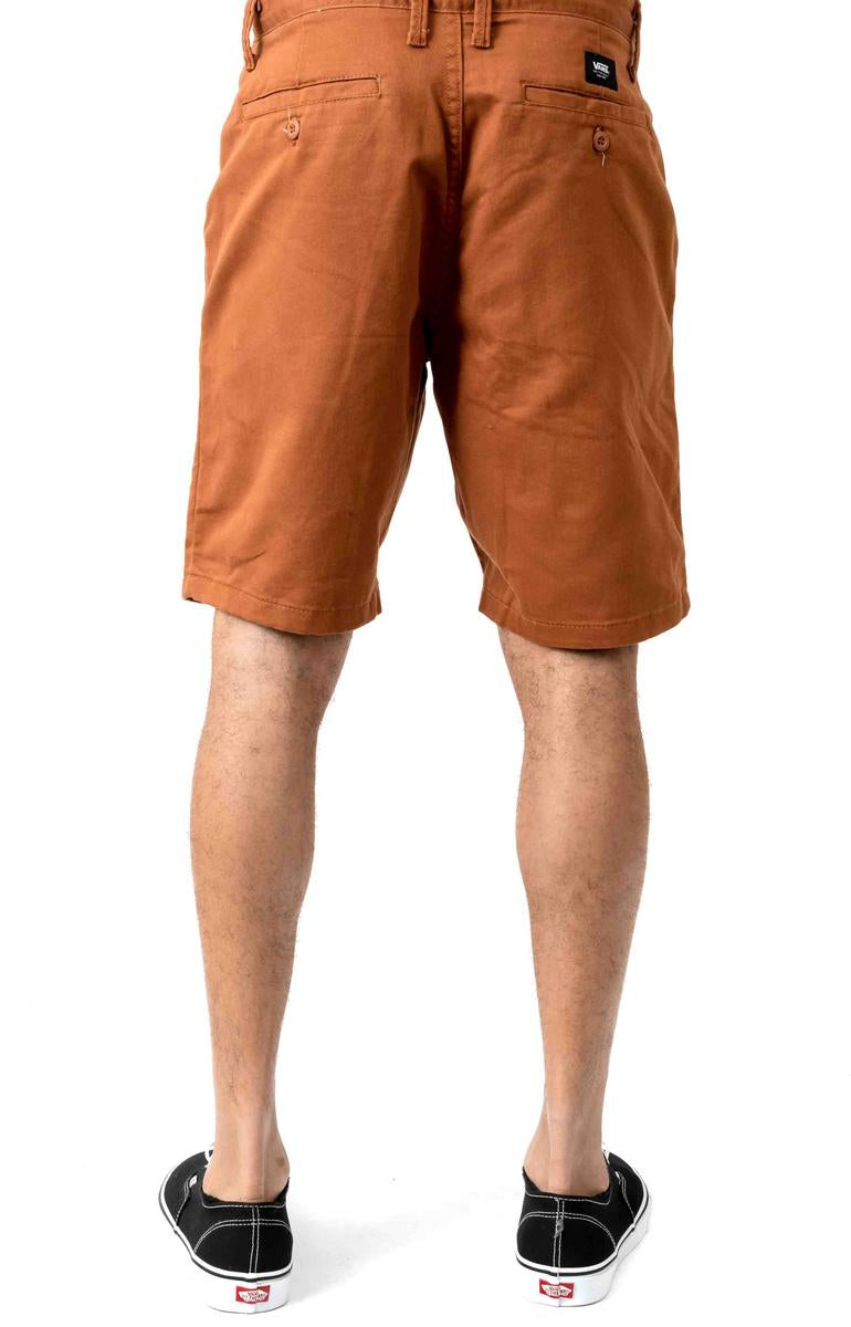 The Authentic Stretch Short 20 is a 64% cotton, 34% polyester, and 2% elastane 7.8 oz. Sturdy Stretch twill chino short that utilizes a unique blend of engineered fibers to provide comfort and increased durability with exceptional shape and stretch retention. The Authentic Stretch Short also features front slash pockets, back welt pockets with button closures, a woven Vans label, and a medium rise, modern fit.
