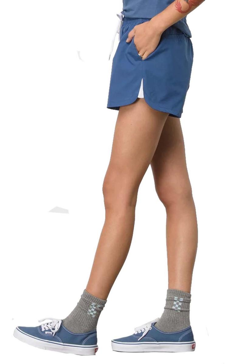 The Get It Woven Short is a high-rise polyester short with a sporty, retro look. The elastic waistband ensures a comfortable fit, while the drawcord allows for added adjustability. Finished with contrast inset panels at the side seams and an old school dolphin hem, this pull-on short brings a timeless aesthetic to your everyday style.